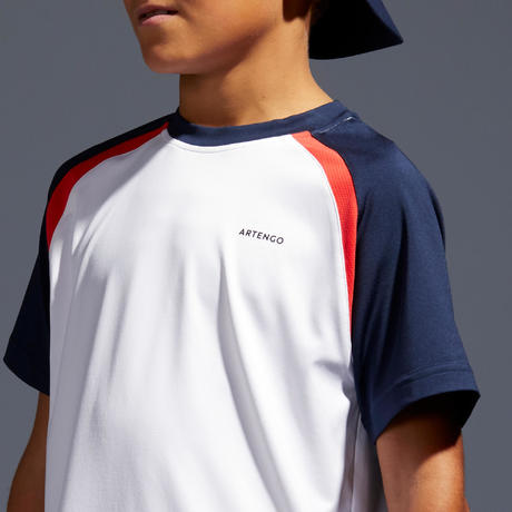 T-shirt voor kinderen 500 wit marineblauw