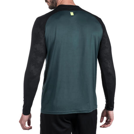 Dit shirt in twee materialen beschermt je tegen de kou, dankzij de rekbare stof kun je de mouwen gemakkelijk opstropen zodat je optimaal kunt bewegen tijdens het spelen.